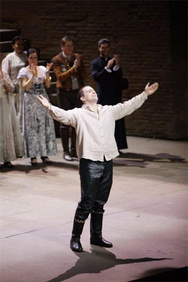 E’ vero! Ora sono un Tenore a tempo pieno ma, durante i lunghi anni di studio, ho fatto, per mantenermi e un po’ perché mi divertivo, mille altri lavori tra cui lo stuntman. Ogni tanto compaiono su facebook foto in cui mi si vede insieme a Di Caprio durante le riprese di Gangs of New York. Insomma non il classico percorso ma, ad esempio nell’uso delle armi bianche, che oggi mi capita di dover usare in scena, comunque formativo.